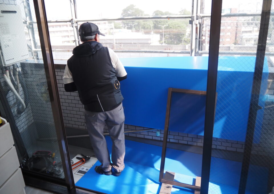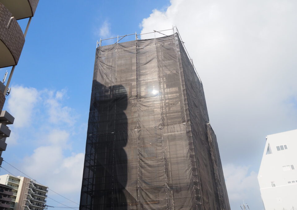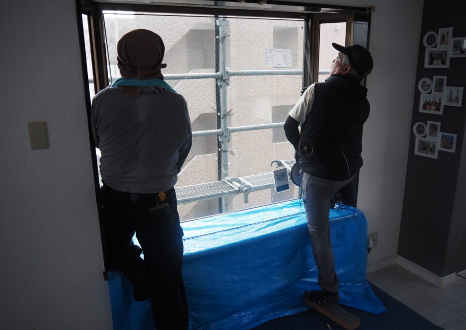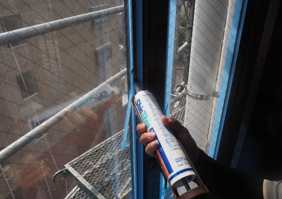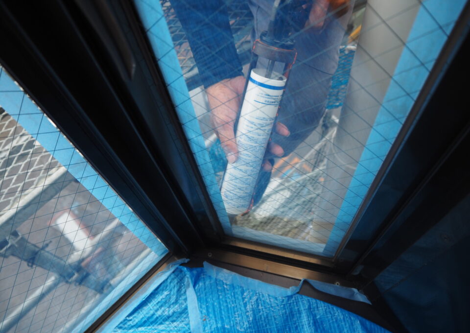 出窓のガラス交換は外部作業を伴いますので、足場が架かっているタイミングでの工事となりました