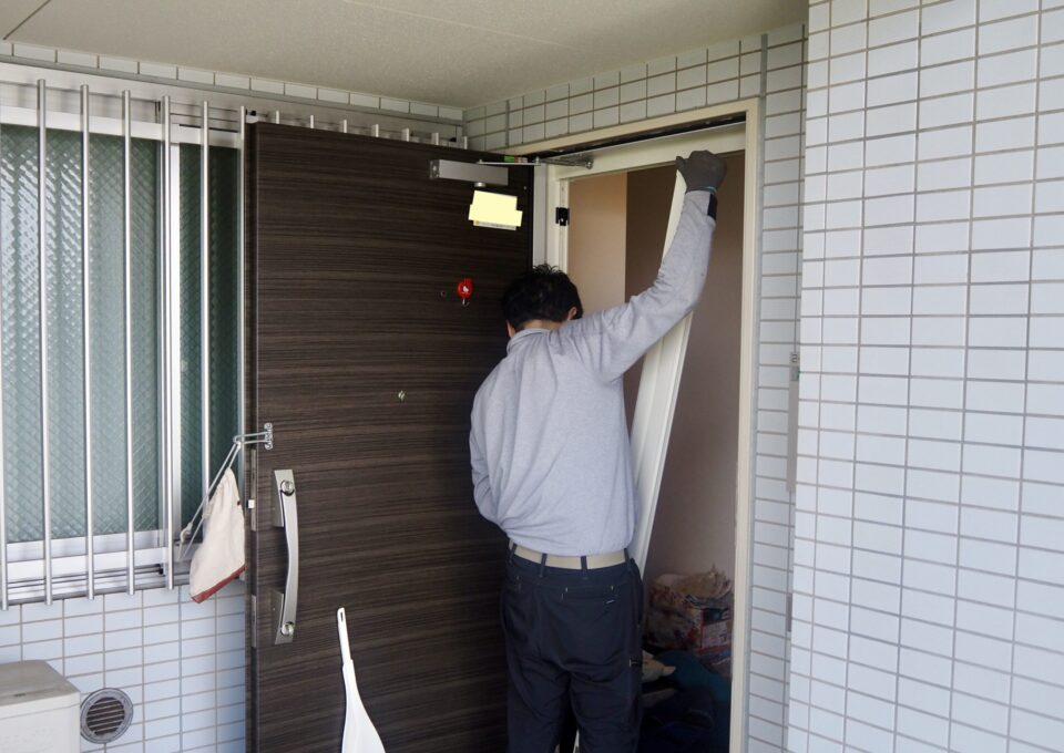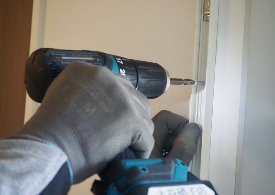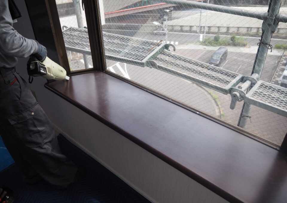 古い網戸を撤去した後、新しい網戸レールの接着面をクリーニングします