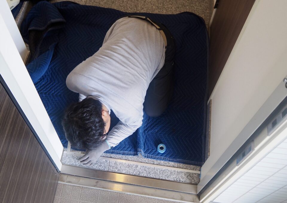 現場の清掃。ついでにドアストッパーのゴムの跡も落としておきました。
