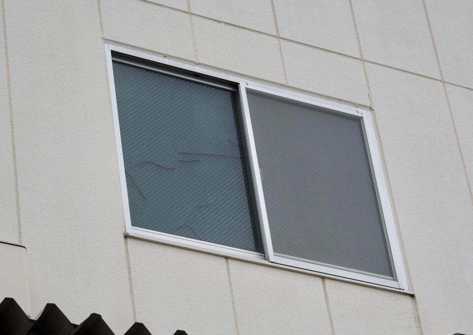 泥棒に、サッシのクレセント錠の周辺が割られています