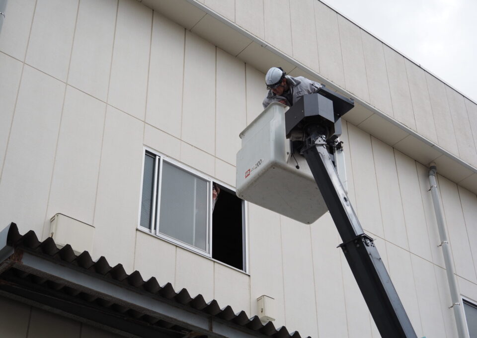 出窓のガラス交換は外部作業を伴いますので、足場が架かっているタイミングでの工事となりました
