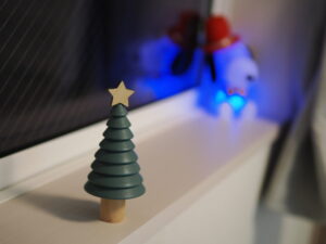 窓辺が暖かいと、ツリーの灯りはより美しく映え、